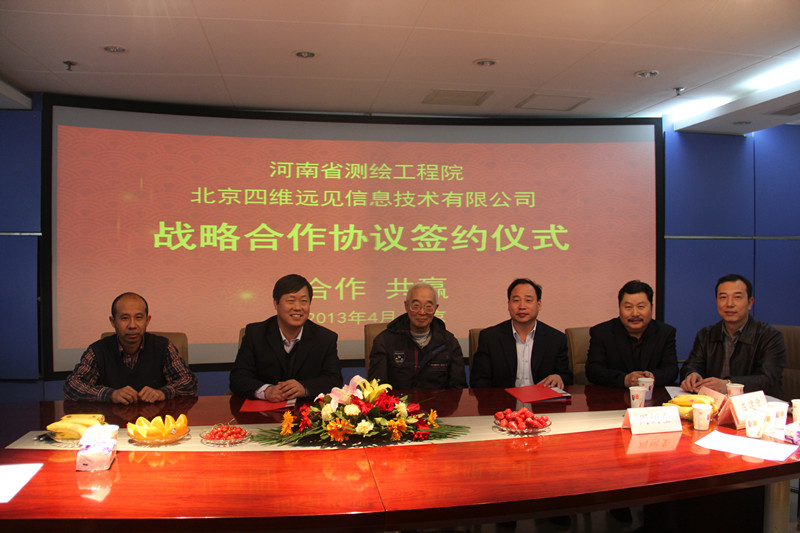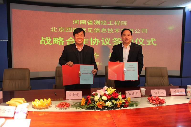初春的北京,如沐的春风,和煦的春光,在这春暖花开的美丽时节,4月10日,我公司与河南省测绘工程院战略合作协议签约仪式在北京总部基地隆重举行。河南省测绘工程院院长宋新龙、副院长周树奎,我公司董事长刘先林院士,总经理左建章,副总经理刘宗杰、刘凤德等领导出席了签约仪式。
