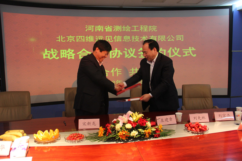 最后,左建章总经理代表我公司与河南省测绘工程院宋新龙院长签署了双方战略合作协议,公司领导班子与河南省测绘工程院有关领导共同见证签约。